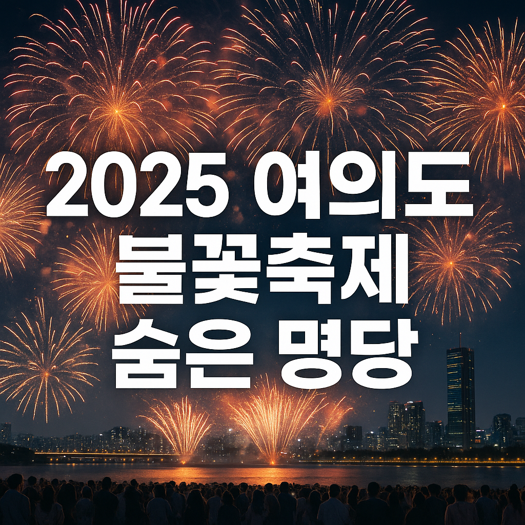 2025 여의도 불꽃축제에 대해서 알아보고 계신가요? 지금부터 2025 여의도 불꽃축제 숨은 명당을 알려드릴게요. 출발하기 전 이 글만 보고 가시면 명당에서 편안하게 아름다운 밤하늘의 불꽃을 감상할 수 있어요. 주차는 어디에 해야 하는지, 대중교통은 어떻게 이용해야 하는지 걱정되신다고요? 교통 통제 구간부터 여의도 인근 주차장 정보, 대중교통 이용 꿀팁까지 상세하게 안내해 드리니 끝까지 읽어주세요. 목차2025 여의도 불꽃축제 일정 및 기본 정보불꽃축제 숨은 명당 추천교통 통제 구간 및 주차장 정보대중교통 이용 꿀팁불꽃축제 준비물 및 복장 팁2025 여의도 불꽃축제 일정 및 기본 정보 2025년 서울세계불꽃축제(여의도 불꽃축제)는 오는 9월 27일(토) 여의도 한강공원 일대에서 개최됩니다. 올해는 한국..